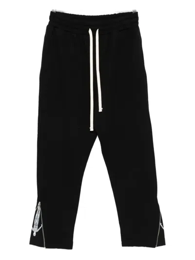 black drawstring fastening side zip detailing printed graphic panelled design cotton construction