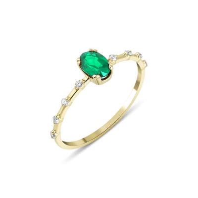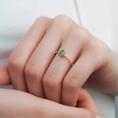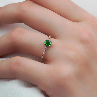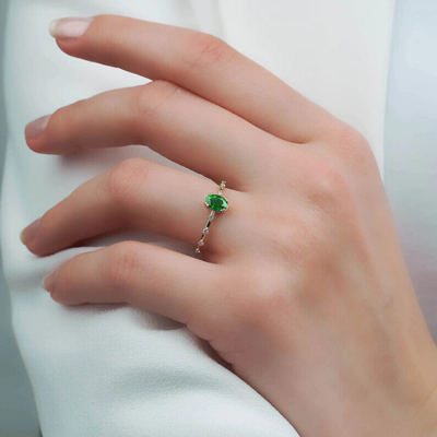 Pre-owned Emerald Ring, 14k Gold Ring, Diamond Ring, Engagement Ring, Solid Gold Ring, In White