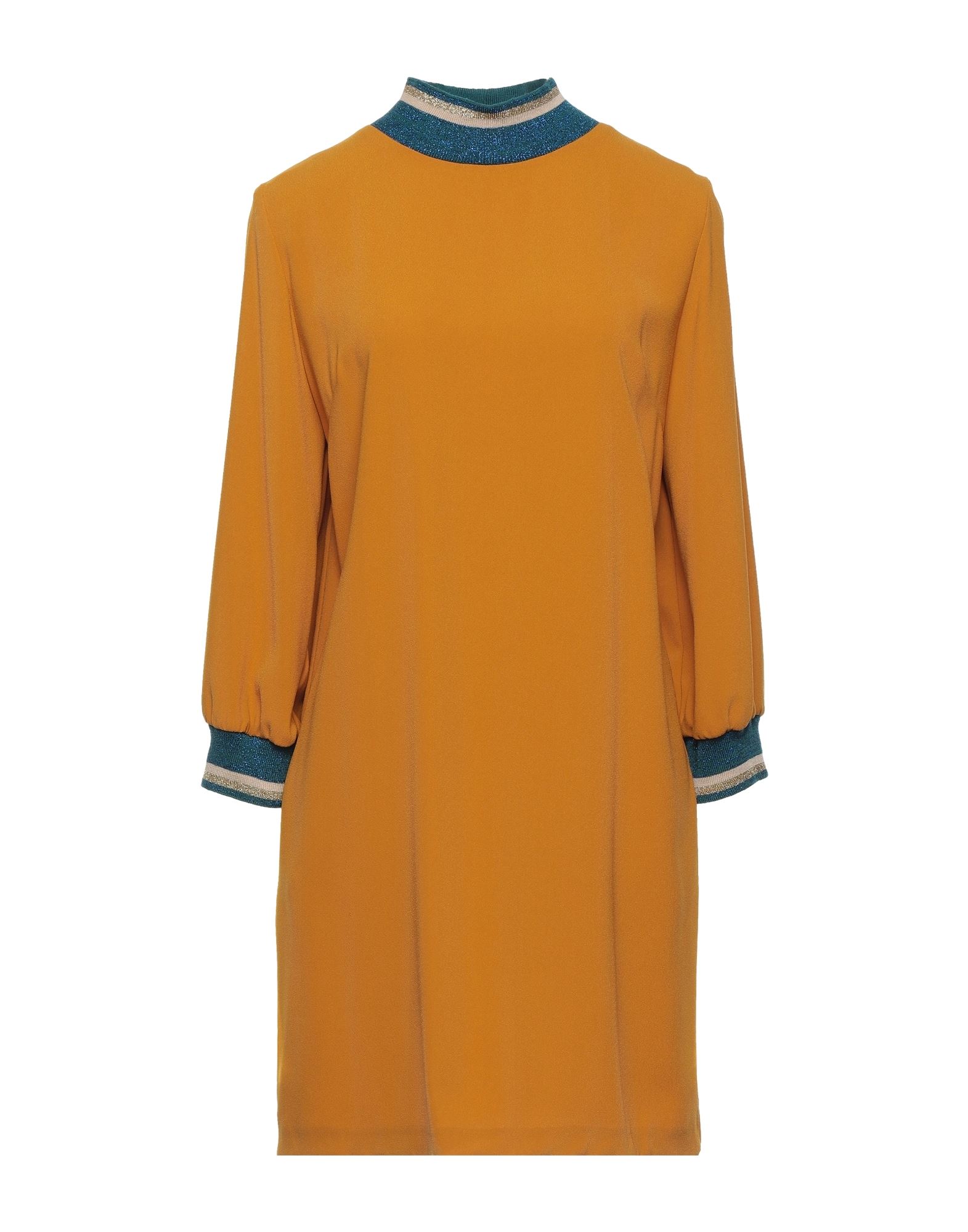 crepe, knitted, lamé, no appliqués, multicolor, turtleneck, long sleeves, unlined, no pockets, dress , Color: Ocher , Size: XXS