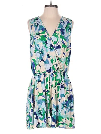 Haptics Romper, Size: Medium. Item Details: Blue, Tropical Pattern, V-Neck, Sleeveless, Print, Women's Dresses, Polyester/Spandex