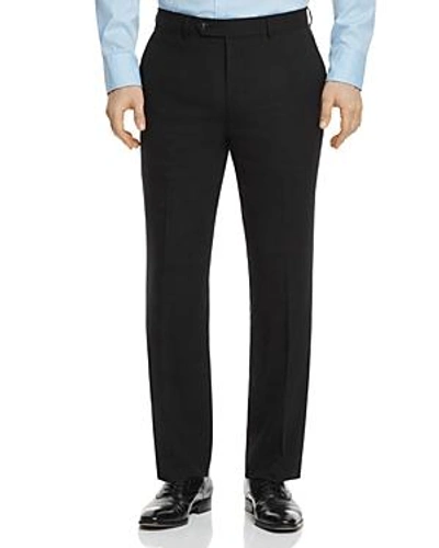 HART SCHAFFNER MARX Flat Front Solid Stretch Wool Trousers In Charcoal