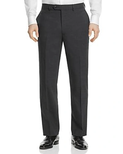 HART SCHAFFNER MARX Flat Front Solid Stretch Wool Trousers In Charcoal Solid
