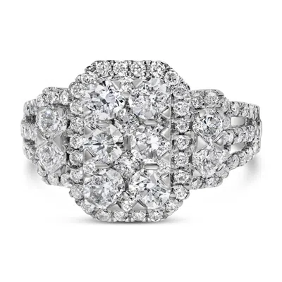 14k White Gold 2 1/4 Cttw Diamond Cocktail Cluster Ring