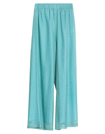 lace, no appliqués, solid color, high waisted, drawstring waist, wide leg, comfort fit, no pockets, tailored , Color: Turquoise , Size: M