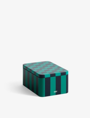 HAY Green And Dark Blue Checkerboard-pattern Small Tin Container