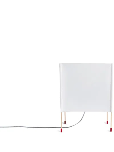 Paper Cube table lamp from HAY featuring white, folding design, paper, four wooden legs and bulb not included.