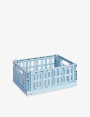 HAY Soft Blue Colour Stackable Medium Plastic Crate 34cm X 26cm