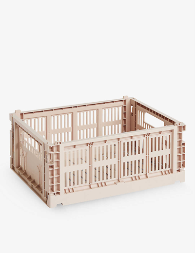 Scandi-cool and minimalist motifs are just part of HAY's DNA, and with these crates, those admirable qualities are the backbone of your well-kept home. Stackable, easy to clean and even ventilated to ensure air circulation, the rectangular container is handy when it comes to keeping toys and countless other items out of the way until they're needed - cue your clutter-free interior spaces.HAY plastic crate100% plasticStackable, foldable, colour-block designHeight 14cm, length 34.5cm, width 26.5cmWipe with a clean, dry cloth