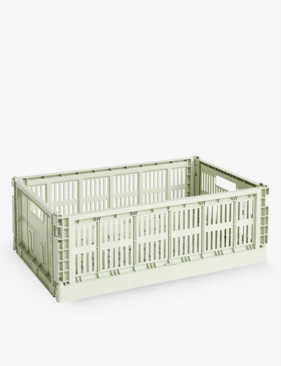 HAY crate100% plasticStackable design, ventilated, rectangular shapeHeight 15.5cm, width 40cm, depth 60cmWipe with a clean, dry cloth