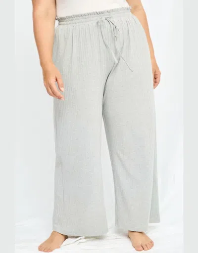 Ribbed Paperbag Wide Leg Pants In Grey