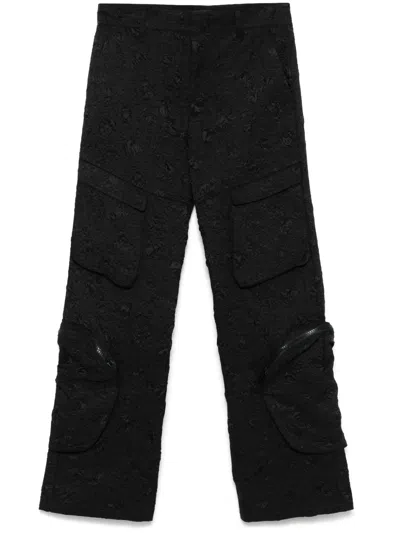 black front press-stud and zip fastening belt loops two side slash pockets multiple cargo pockets