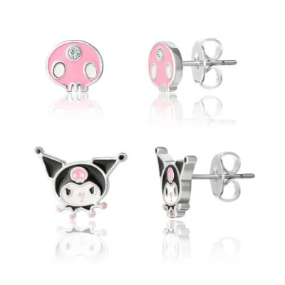 HELLO KITTY Kids' Skull And Kuromi Silver Plated Earring Set In Metallic