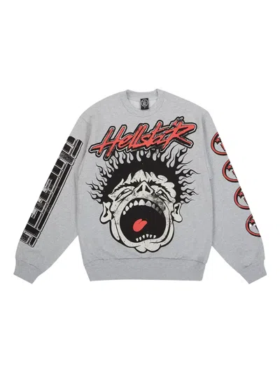 light grey crew neck graphic print to the fron long sleeves ribbed cuffs and hem graphic print to the rear