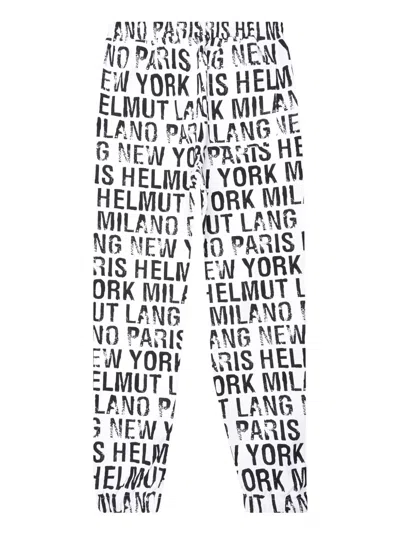 white all-over logo print elasticated cuffs drawstring waistband relaxed fit straight leg