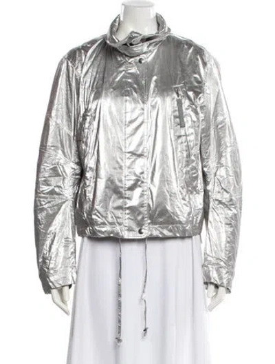Helmut Lang Biker Jacket Silver Pointed Collar Zip Pockets & Zip Closure Designer Fit: Jackets by Helmut Lang typically fit true to size. | Helmut Lang Biker Jacket in Silver, Women's M