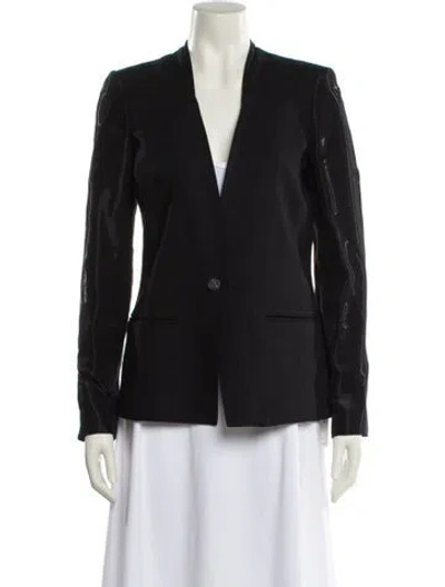 Helmut Lang Blazer Black Mesh Accents & Collarless Slit Pockets & Button Closure Designer Fit: Jackets by Helmut Lang typically fit true to size. | Helmut Lang Blazer in Black, Women's US 2 | XS