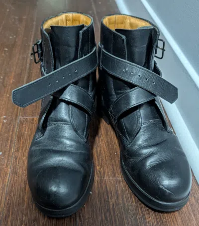 Marked Size 9 But Insole Measures 11.6" Worn But Have Been Restored Decently Well. Vibram Soles Etc. Would Love To Keep These But They're Just Too Tight On Me @castletoocastle Send Offers | Helmut Lang Bondage Strap Engineer Combat Boots in Black, Men's (Size 11)