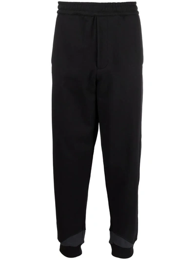 Jet-black cotton logo-patch track pants from HELMUT LANG featuring fine knit, elasticated waistband, two diagonal pockets to the sides and logo patch to the rear.