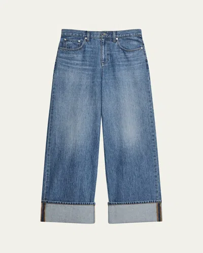 Helmut Lang dropcrotch jeans finished with wide, exaggerated cuffs Lowrise; sits at the hip Fivepocket style Relaxed, baggy fit Full length Button/zip fly; belt loops Organic cotton Machine wash cold Imported
