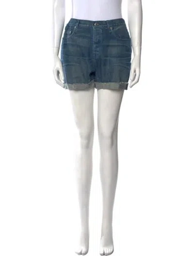 Helmut Lang Shorts Blue High-Rise Light Wash Fit: Shorts by Helmut Lang typically fit true to size. | Helmut Lang Mini Shorts in Blue, Women's S