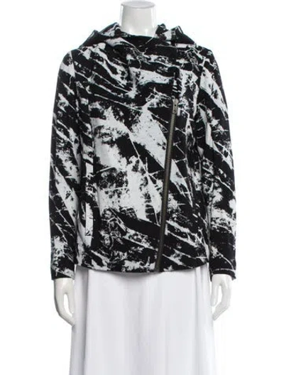 Helmut Lang Evening Jacket Black Printed With Hood Pointed Collar Slit Pockets & Zip Closure Designer Fit: Jackets by Helmut Lang typically fit true to size. | Helmut Lang Printed Evening Jacket in Black, Women's M