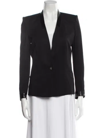 Helmut Lang Wool Blazer Black Leather Trim Embellishment & Collarless Slit Pockets & Button Closure Designer Fit: Jackets by Helmut Lang typically fit true to size. | Helmut Lang Wool Blazer in Black, Women's US 2 | XS