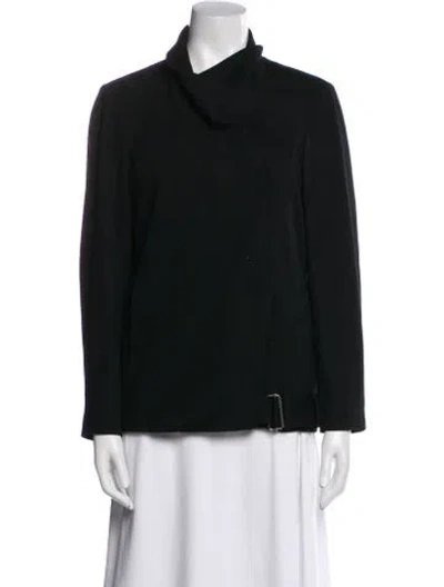 Helmut Lang Wool Jacket Black Stand Collar Slit Pockets & Zip Closure Designer Fit: Jackets by Helmut Lang typically fit true to size. | Helmut Lang Wool Jacket in Black, Women's M