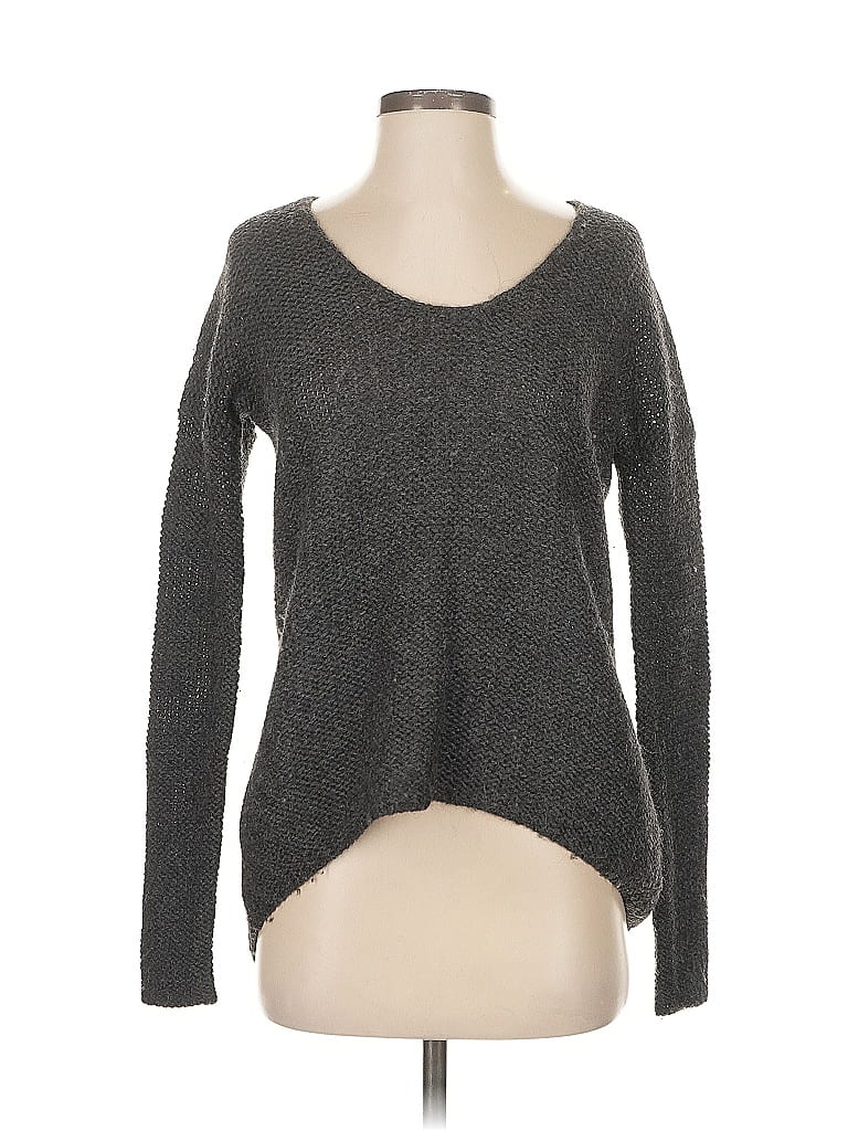 Helmut Pullover Sweater Item Details: Gray, Metallic Pattern, Scoop Neck, Long Sleeve, Cut Outs, Women's Tops, Alpaca/Wool