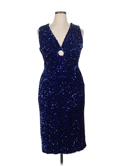 HELSI Cocktail Dress, Size: X-Large. Item Details: Blue, Stars Pattern, Plunge Neckline, Knee Length, Sleeveless, Glitter, Women's Dresses, Polyester/Spandex