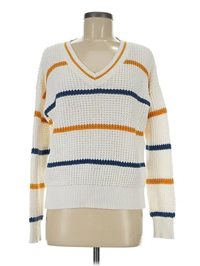 Hem & Thread Pullover Sweater, Size: Medium. Item Details: Ivory, Stripes Pattern, V Neck, Long Sleeve, Women's Tops