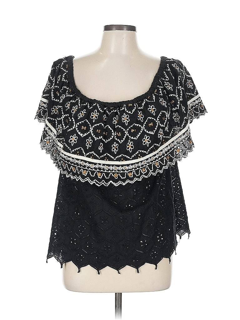 Hemant & Nandita Short Sleeve Top, Size: Large. Item Details: Black, Sweetheart Neckline, Sequins & Rhinestones, Women's Tops, 100% Cotton