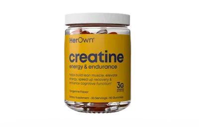 Creatine Gummies. Benefits: EMPOWER YOUR STRENGTH FOR HER. BY HER. Unleash your inner strength with Her Own Creatine Gummies formulated for the modern woman. Each serving delivers 3g of pure creatine monohydrate to support lean muscle, tone glutes, and elevate workout performance, whether you're lifting, running, or building curves confidently.. CELLULAR FUEL THAT WOMEN NEED. Compared to men, womens bodies store 70-80% less creatine! Overcoming this disadvantage can mean the difference between muscle loss, fatigue and poor mood vs strength, performance and cognitive power. Women of all ages benefit from taking creatine.. CLEAN ENERGY & ENDURANCE, NO COMPROMISE. Fuel your body with clean energy, no sugar, no crash. These vegan, gluten-free gummies help boost stamina, endurance, and recovery so you can train harder and stay consistent, from strength sessions to everyday wellness.. BUILD LEAN MUSCLE & SHAPE YOUR GLUTES. Designed to help women reach their strength and physique goals, creatine supports ATP energy production for stronger lifts, increased resistance, and enhanced muscle definition especially when targeting the glutes, legs, and core.. CONVENIENT, TASTY & SUGAR FREE. Say goodbye to chalky powders and hard-to-swallow pills. Enjoy delicious Tangerine-flavored gummies that fit seamlessly into your daily routine with 0 sugar no mixing, no measuring, just chew and go for consistent results anytime, anywhere.. HER OWN CLEAN PROMISE WELLNESS EVOLVED. Formulated with womens wellness in mind. Vegan, non-GMO, gluten-free, and made without synthetic colors or added sugar. Crafted in GMP-certified facilities and third-party tested for purity and potency because you deserve supplements that work as hard as you do.. Key Ingredients: Creatine (as creatine monohydrate). Features: Sugar Free. Vegan.