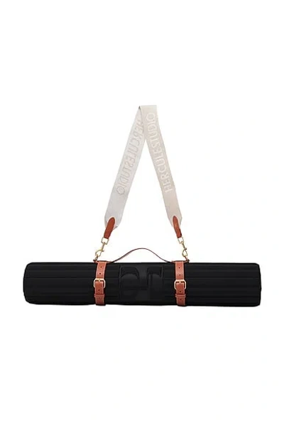 HERCULE STUDIO Soca Mat Carrying Strap in Camel & Beige - Brown. Size all. Elegant and practical carrying strap, inspired by leather goods. Made from vegetable-tanned leather and woven cotton. Carried by hand, on the shoulder or across the body. Fits sports or yoga mats of various diameters. Gold details and woven logo for a touch of refinement. Lightweight design. Measures approx 2.5 W x 36.25 L. HTUF-WA8. AI-ST-0. About the designer: