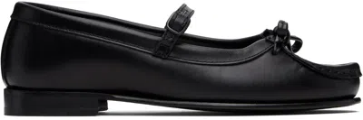 Buffed calfskin flats. · Moc toe with self-tie fastening · Mary-Jane-style strap at vamp · Leather block heel with rubber injection · Leather sole Supplier color: Black
