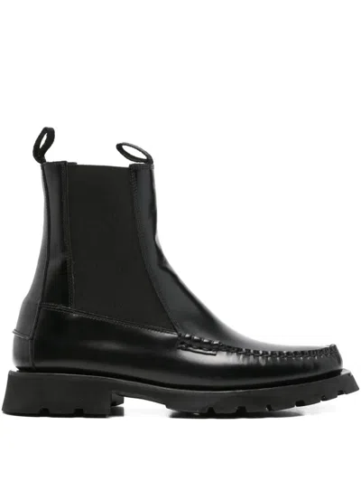 black calf leather elasticated side panels pull-tab at the opening lug sole stitching detail