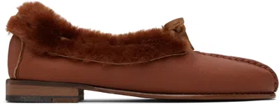 HEREU Tan Tilla Shearling Loafers In Brown