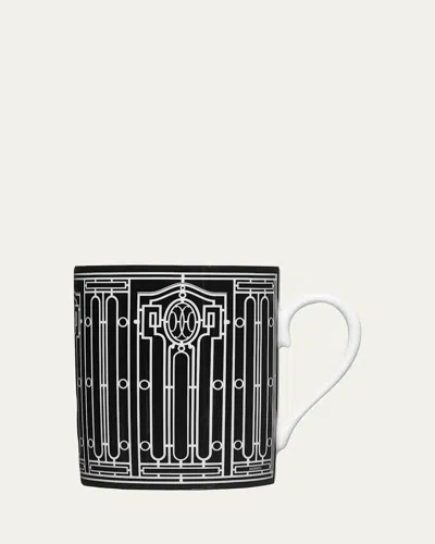 Porcelain mug. Holds 10 ounces. Dishwasher and microwave safe. Made in France.