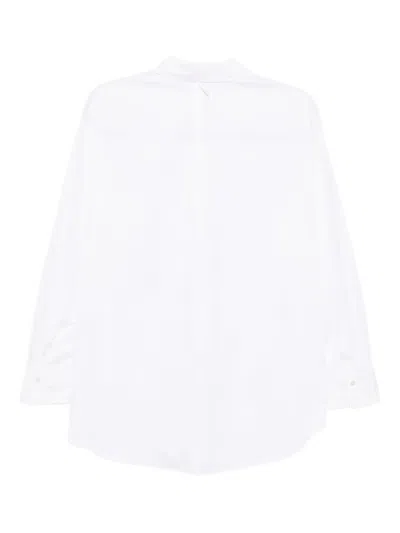 circa 1990s white front button fastening embroidered logo buttoned-cuff sleeves asymmetric hem Condition: EXCELLENT. This previously owned item is in near-perfect condition with no signs of damage or use.