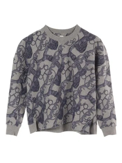 circa 2000s timberwolf grey cotton blend jersey texture mélange effect Bride de Cour print ribbed trim crew neck drop shoulder long sleeves short side slits fleece lining straight hem Condition: GOOD. This previously owned and used item is in good condition with minimal signs of use. This may include fading of material or plating and scratches.