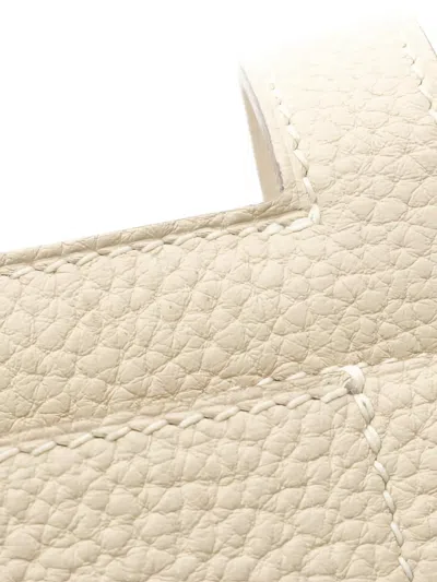 ivory leather top handle exposed stitching outer slip pocket z stamp Condition: EXCELLENT. This previously owned item is in near-perfect condition with no signs of damage or use.