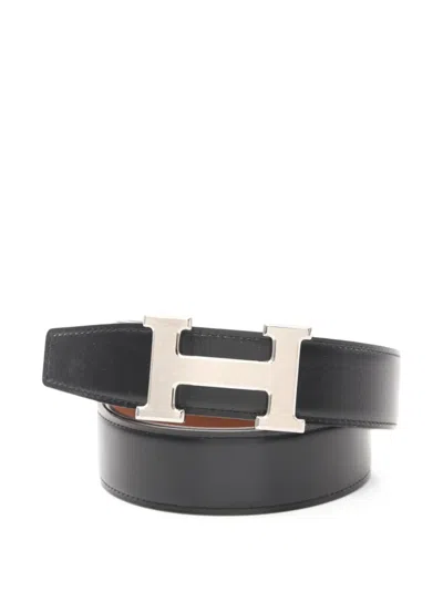 circa 2021 black calf leather/Togo leather reversible silver-tone logo plaque punched holes adjustable fit Condition: EXCELLENT. This previously owned item is in near-perfect condition with no signs of damage or use.