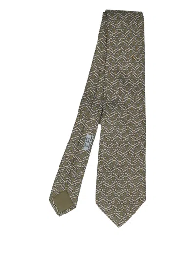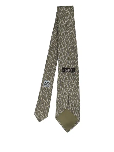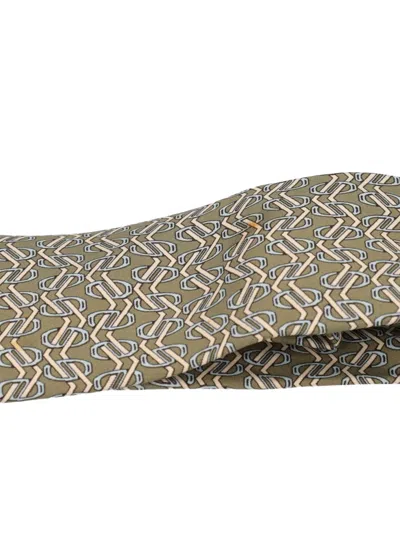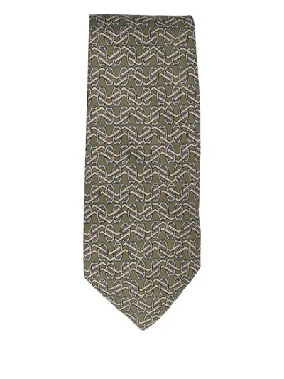 Pre-owned 2023 Patterned Silk Tie In Green