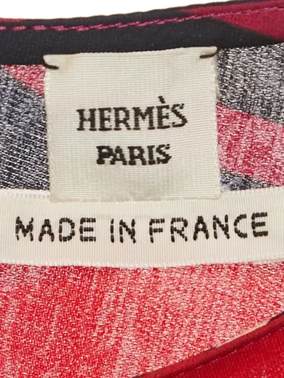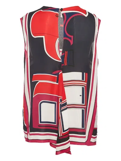 Pre-owned Abstract-print Silk Top In Red