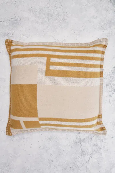 hermes Hermes Avalon Pillow in Multi - Beige. Size all. 90% wool 10% cashmere. Made in Italy. Original dustbag, booklet and brand box not included. Measures approx 19 W x 19 H. Excellent. Very light fraying on exterior. FNEF-WH30. 8547583. About the designer: