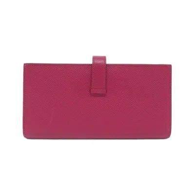 Pre-owned Bearn Ruby Epsom Leather Long Wallet (bi-fold) () In Red