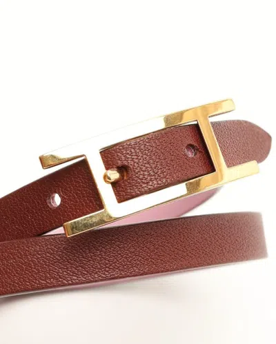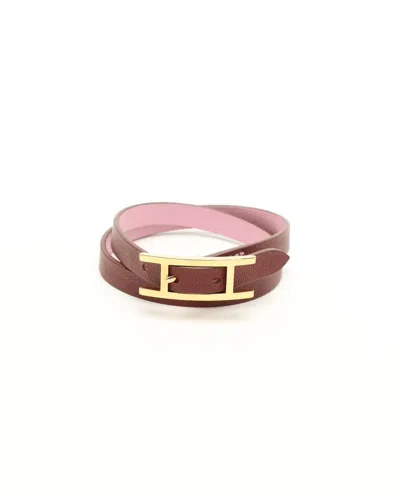 Hermès Behapi Double Tour Bracelet- Reversible brown and pink leather- Gold-tone hardware- Double tour design- H buckle closureOverall Preloved Condition: Very Good.Delivered with boxMade in FranceDimensions:Height 0,8 cmWidth 0,8 cmDepth 0,2 cmPlease note that the majority of our items are vintage and therefore have tales to tell unless stated otherwise. Therefore, please look at pictures, descriptions and measurements provided as they give you the best idea of the story this item has to tell.* Please note that when you buy a vintage product, the dimensions may vary slightly from a new one depending on previous care and storage.