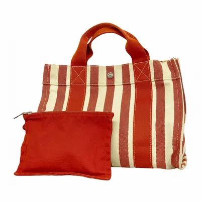 Brand: Hermes, Color: Beige, Red color, Material: Canvas, Dimensions: 26cm x 34cm x 19cm / 10.23'' x 13.38'' x 7.48'', Condition: Rank AB. Rank AB Used - Traces of usage, scratches / dirt can be seen but generally in good condition. Before purchasing, please refer to the images for the exact condition of the item. Before purchasing, please refer to the images of the accessories included with the item. Bag Common Damage Scratch: Slight