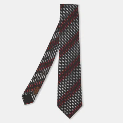 Pre-owned Hermès Black Wave Pattern Silk Classic Tie
