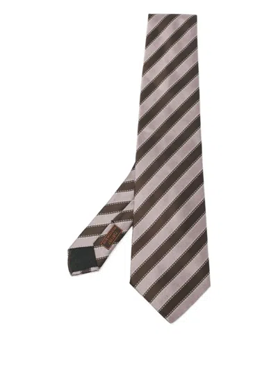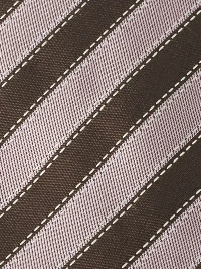 brown silk fabric diagonal stripe pattern light pink stripes subtle stitching between stripes embroidered logo Condition: GOOD. This previously owned and used item is in good condition with minimal signs of use. This may include fading of material or plating and scratches.