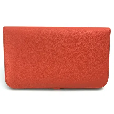 Pre-owned Dogon Duo Orange Red Togo Leather Long Wallet (bi-fold) ()